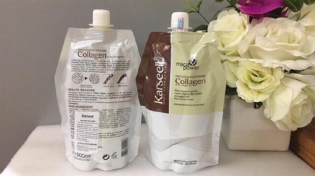 Thành phần của dầu ủ tóc Collagen Karseell gồm nhiều dưỡng chất như hạt macca nguyên chất, collagen tươi, protein, khoáng chất, vitamin E, dầu dừa, dầu bơ, tảo biển và tinh bột lúa mì… có tác dụng giúp nuôi dưỡng tóc từ gốc đến ngọn, phục hồi nhanh và làm chậm quá trình hư tổn của tóc. Collagen tươi cộng thêm protein mang lại công dụng phục hồi tóc hư tổn nặng, tăng liên kết cấu trúc tóc, giúp sợi tóc chắc khỏe, cung cấp độ ẩm giúp tóc hết khô xơ, hơn nữa còn giúp đào thải độc tố có trong tóc và loại bỏ các bã nhờn dư thừa trên tóc. Tóc sau khi sử dụng một lần sẽ mềm mượt, bồng bềnh hơn và thơm hơn.