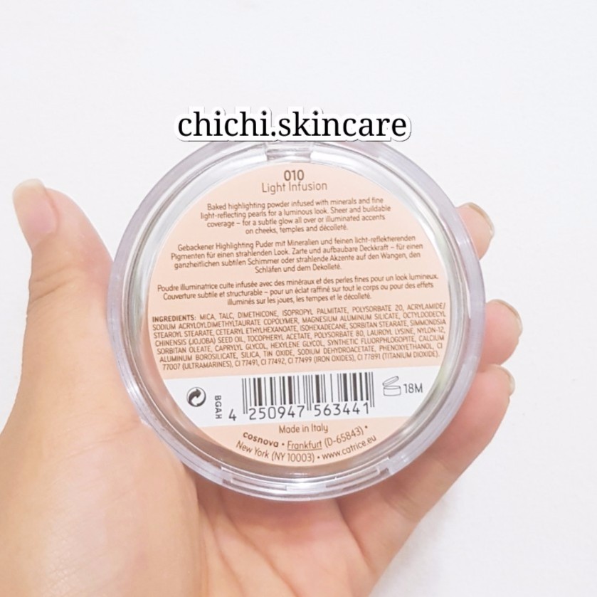 Có lẽ lần đầu tiên nhìn thấy Catrice High Glow Mineral Highlighting, bạn sẽ không thể không dời mắt cho cho em í một điểm cộng to đùng nhờ thiết kế đơn giản, dễ sử dụng và mang theo bên người dù ở bất cứ đâu. Với thiết kế có nắp đậy dạng tròn cùng nắp màu trong suốt, người dùng có thể dễ dàng nhìn thấy được màu phấn bên trong. Phấn tạo khối/đánh góc CATRICE Sun Glow Mineral Bronzing Powder giúp tạo gương mặt thon gọn hoặc đánh nâu theo phong cách Tây Âu đang hot hiện nay, làm cho gương mặt trở nên có sức hút, quyến rũ hơn. Chất phấn mềm mịn, độ bám cao và lâu trôi. Ưu điểm của Catrice High Glow Mineral Highlighting Được sử dụng công nghệ sản xuất hiện đại nhất, Catrice High Glow Mineral Highlighting mang đến cho người dùng những hạt phấn siêu mịn, sau khi đánh lên da trở nên căng bóng và tự nhiên hơn. Nếu nói việc sử dụng các sản phẩm che khuyết điểm giúp che dấu các khuyết điểm trên khuôn mặt thì phấn highlight được sinh ra chính là dùng để lôi kéo ánh nhìn của người đối diện, để họ không còn để ý đến các khuyết điểm đó nữa Ngoài ra, không thể không kể đến tác dụng giúp khuôn mặt trông thon, gọn và có đường nét rõ ràng hơn.