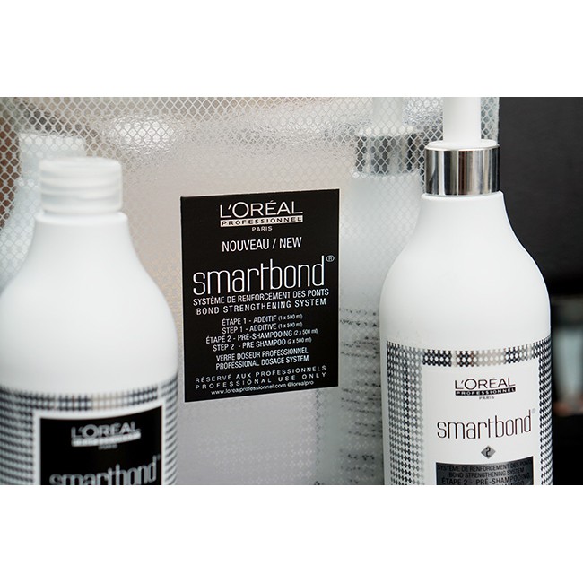 BỘ PHỤC HỒI 3 BƯỚC LOREAL SMARTBOND 500ML + Bộ sản phẩm SmartBond gồm 3 sản phẩm giúp bảo vệ liên kết tóc và duy trì độ chắc khỏe của sợi tóc suốt quá trình dịch vụ kỹ thuật - Bước 1: Một chai hoạt chất bổ trợ 500ml dùng chung với sản phẩm nâng sáng, sản phẩm màu nhuộm uốn hay duỗi - Bước 2: Hai chai kem làm sạch hóa chất 500ml x2 Sử dụng sau khi xả sạch sản phẩm nâng sáng hoặc màu nhuộm trên tóc trước bước gội Loreal Professionel Smartbond 500ml – Dung tích: 3 x 500ml – Hạn sử dụng: 3 năm – Xuất sứ: TÂY BAN NHA – Thương hiệu : LOREAL PROFESSIONEL – Loại tóc: PHỤC HỒI TÓC HƯ TỔN NẶNG Bộ phục hồi 3 BƯỚC LOREAL SMARTBOND 500ML