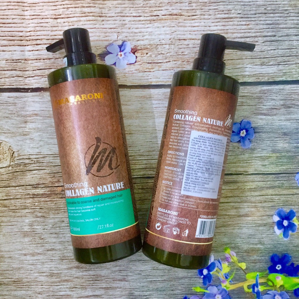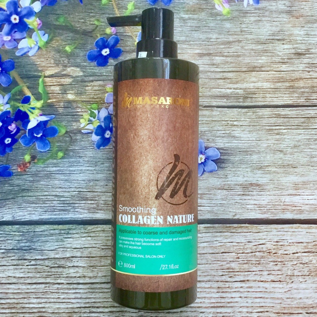 KEM HẤP Ủ PHỤC HỒI TÓC SIÊU MỀM MƯỢT CỦA MASARONI SMOOTHING COLLAGEN NATURAL Dung tích: 800ml (dạng chai). Đây là sản phẩm Collagen dùng để hấp ủ tóc, phục hồi cấu trúc tóc hư tổn do uốn duỗi nhuộm gây nên, cung cấp độ ẩm cho tóc khô xơ bị mất nước do tác dụng của máy kẹp máy uốn. Đồng thời cung cấp Protein, Keratin và dưỡng chất collagen giúp chắc khỏe sợi tóc, đồng thời tạo một lớp màng nóng bao bọc bảo vệ sợi tóc, chống nhiêt, chống tia UV, cho bạn tự tin với mái tóc đầy sức sống, và mềm mượt óng ả. Sản phẩm có thể sử dụng tại nhà, kế hợp với dầu gội xả và tinh dầu dưỡng để tăng thêm hiệu quả. Cam kết bán hàng chính hãng Công ty 100% Xuất hóa đơn đỏ cho đơn hàng trên 500k nếu khách có nhu cầu và cung cấp MST #masaroni #collagen #collagenmasaroni #phuchoitoc