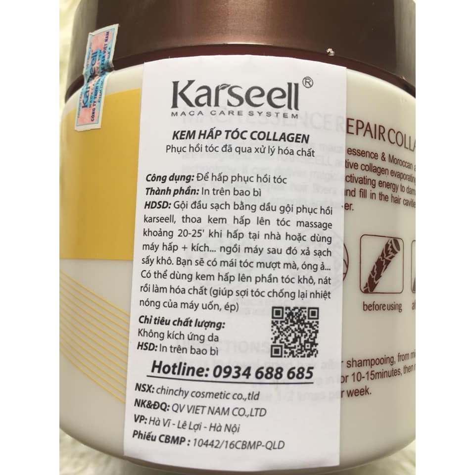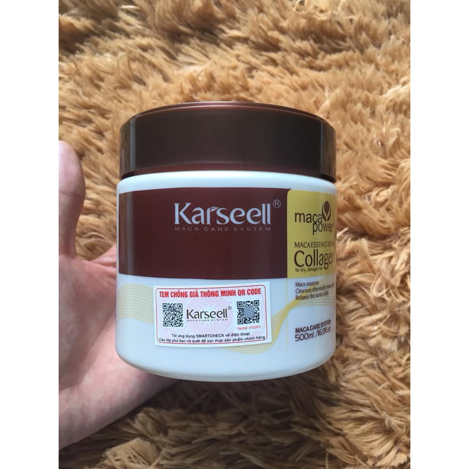 Sản phẩm Kem Hấp Phủ Lụa Collagen Maca Karseell Siêu Mềm Mượt Tóc 500Ml hiện đang được bán tại Shopee.
