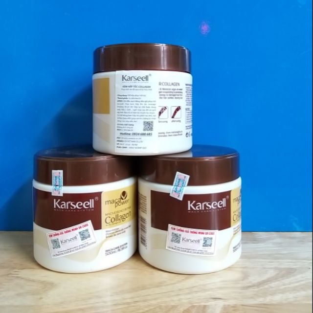 Kem Hấp Tóc Collagen Karseell. ( phục hồi tóc đã qua sử lý hóa chất) Công dụng : để hấp Phục Hồi Tóc Hư Tổn. Thành phần : xem trên bao bì sản phẩm. Hướng dẫn sử dụng : gội đầu sạch, thoa kem hấp lên tóc, massage khoảng 20-25 phút , khi hấp tại nhà hoặc dùng máy hấp + kich nhiệt, ngồi máy , sau đó xã sạch ,sấy khô, bạn sẽ có mái tóc mượt mà, óng ả, có thể dùng kem hấp lên phần tóc khô ,nát, rồi làm hóa chất,, giúp sợi tóc chống lại nhiệt, nóng của máy, uốn, ép, Xuất sứ : FORMULATED IN. ITALY. Nhập khẩu & PP: QV Việt Nam. CO. LTD.