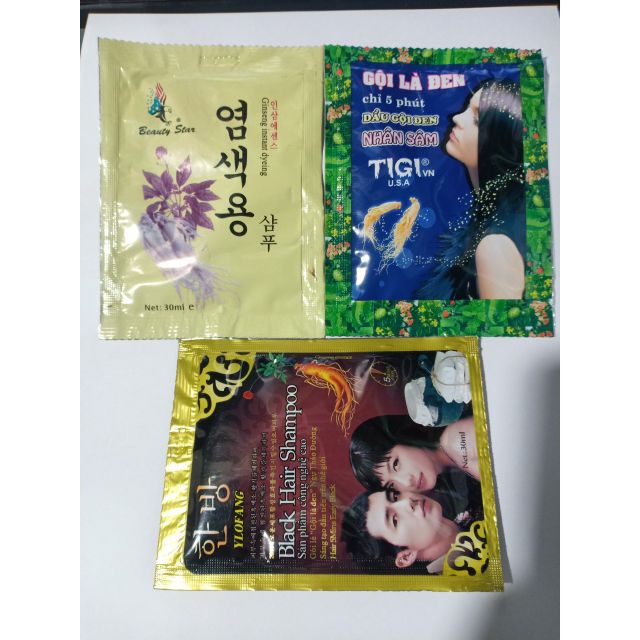 Quy cách : lẻ 1 gói Công dụng : sản phẩm được triết xuất từ thảo dược nhân sâm thiên nhiên lên rất tốt và an toàn cho da đầu. Giúp các bạn có nhu cầu gội đen tóc. Từ mái tóc nhuộm mầu khi gội chuyển sang đen. Hdsd : Với nam giới lên sử dụng 1 gói. Còn chị em phụ nữ lên gội 2 gói 1 lần. Trộn đều 2 thành phần trong 1 gói vào nhau.
