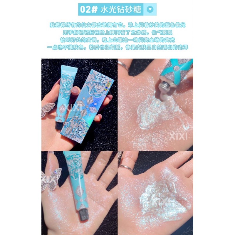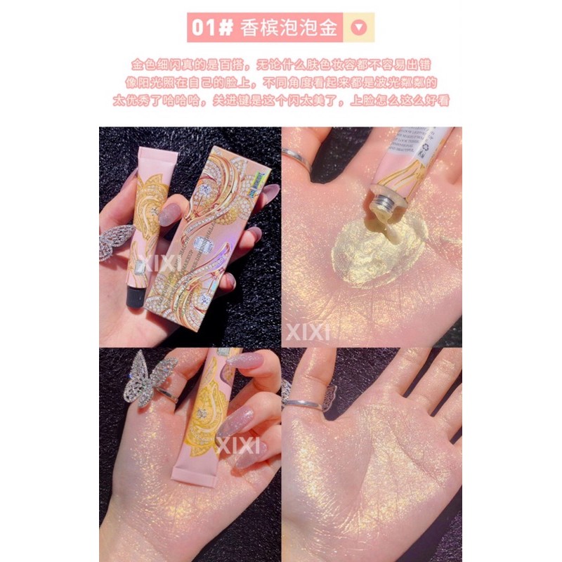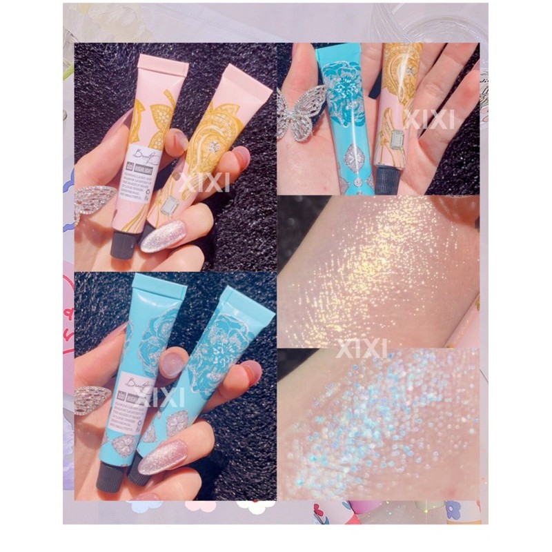 Highlight Tuýt Xixi hoa văn #69k Highlight dạng lỏng kim tuyến mỏng nhẹ ,lấp lánh ,được thiết kế dang típ ,kế hợp với chút hoa văn nhẹ nhàng Thiết kế dạng tuýt nên các nàng chỉ cần bóp nhẹ lấy muột lượng vừa đủ thoa lên nha có thể dùng cho body luôn nha