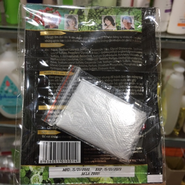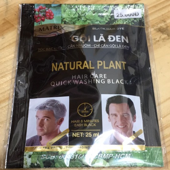 1 gói Gội là đen Matrix 25ml * Tóc bạc không cần nhuộm chỉ cần gội là đen * Thể tích thực: 25ml * SCB: 004310/19/CBMP-HCM * Sản phẩm chất lượng cao của: công ty TNHH SX TM DV Contra. Địa chỉ: Gò Vấp, HCM.