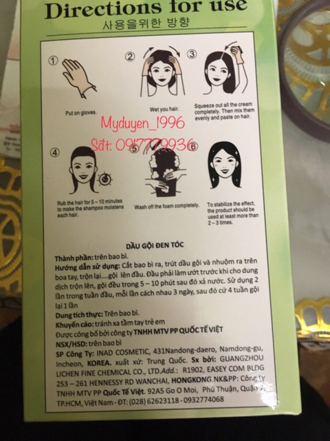 👉HDSD: Cắt bao bì ra, trút dầu gội và nhuộm ra, trộn lại và gội đều lên tóc. Đầu phải làm ướt trước khi thoa dầu gội, gội trong 5-10p sau đó xả sạch với nước. Sử dụng 2 lần trong tuần đầu, mỗi lần cách nhau 3 ngày, sau đó cứ 4 tuần gội lại 1 lần 💥Có 2 màu nâu và đen cho khách lựa chọn 💥 giá: 10,5k/ gói 100k/ hộp 10 gói