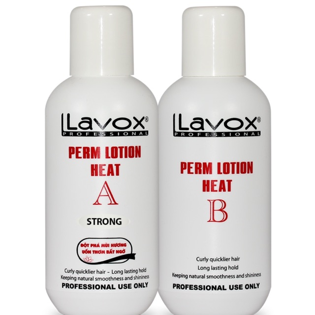 CÔNG DỤNG Uốn Nóng Kỹ Thuật Số Collagen với công thức chiết xuất từ thảo mộc và Protein chứa các hoạt chất tích cực có tác dụng phục hồi tóc và chống lại các tác nhân gây hại cho sợi tóc. Được thiết kế với công thức giàu dưỡng chất giúp tóc sáng bóng và có sức đàn hồi tốt. Cho bạn mái tóc quăn quyến rũ trong thời gian lâu nhất. HƯỚNG DẪN SỬ DỤNG Uốn tóc: 1. Dùng lược cho kem uốn Perm Lotion A lên tóc, lưu kem trên tóc từ 15-30 phút tùy theo sự giãn nở của sợi tóc. 2. Kiểm tra độ giãn nở của sợi tóc khi đã đạt 70 à 80%, xả sạch tóc, dùng xịt dưỡng 2 lớp hoặc dung dịch chống quéo ngọn LAVOX xịt đều lên và sấy khô. 3. Dùng trục cuốn của máy uốn tóc cuốn từng lọn tóc, sau đó dùng máy uốn để tạo nhiệt. * Với tóc khỏe: để khoảng 25-30 phút. * Với tóc yếu : để từ 20-25 phút. 4. Tắt máy để ống trục cuốn thật nguội. Dập tóc: 1. Tiếp tục cho kem dập tóc Perm Lotion B lên cuốn tóc. 2. Lưu kem trên tóc từ 10-25 phút tùy theo loại tóc. 3. Tháo ống cuốn tóc ra, không nên kéo mạnh lọn tóc xoăn. 4. Xả sạch tóc.