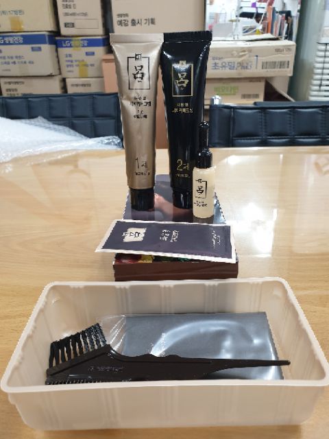 #THUỐC_NHUỘM_TÓC_RYO Những ai đang khổ sở với mái tóc bạc sớm, mà thuốc nhuộm thông thường không phủ bạc hết được. - Những ai dị ứng với mùi thuốc nhuộm đầy hóa chất không thể ngửi nổi - Những ai bận rộn không thể ngồi hàng tiếng để nhuộm tóc. Thì đây là sự lựa chọn đảm bảo hơn tất cả những yêu cầu trên: Thuốc nhuộm tóc dành cho tóc bạc Ryo Premium Dying. Sản phẩm của tập đoàn #AmorePacific - Tập đoàn đứng hàng đầu trong ngành mỹ phẩm Hàn Quốc, sở hửu nhiều thương hiệu danh tiếng: Sulwhasoo, hera, IOPE, Innisfree, mamonde... -- Chỉ cần 25 phút để nhuộm tóc, thao tác cực đơn giản, tự nhuộm tại nhà được, thuốc không có mùi hôi hóa chất, thơm nhẹ mùi nhân sâm, đặc biệt nhuộm xong không gây khô tóc. -- Sản phẩm đã được người nổi tiếng sử dụng, cam kết hiệu quả như trên. -- Thành phần: chính chiết xuất từ #nhân_sâm và linh chi, hà thủ ô, mạc hạn liên, ngũ bội tử, tạng hồng hoa, không gây hại cho da đầu và tóc --- Hướng dẫn sử dụng: Bước 1: Đeo khăn choàng vào (có sẵn trong gói hộp thuốc) để tránh rơi vào quần áo. Bước 2: Đeo bao tay (có sẵn trong hộp) vào, trộn tuyt số 1 và số 2 cùng nhau, dùng lược nhuộm chải thật đều nhiều lần lên tóc sao cho tóc thấm đều thuốc, sau đó chờ 25 phút, gội sạch với nước. Bước 3 : Quan sát thấy tóc đen tự nhiên thì xả kỹ, xả nhiều lần với nước lã. Sau đó dùng gói số 03 là tinh chất dưỡng tóc bôi đều lên tóc. *** Chú ý: tóc ai bạc nhiều nên chọn màu tối nhé (3.0) -màu nâu đen 4.0 -màu nâu sáng 5.0 Màu sắc tươi trẻ hoàn toàn từ thảo dược an toàn cho da đầu . -Giá cty 14kw= 280k . Giảm giá khi inbox. Tuyển sĩ và ctv ck cao