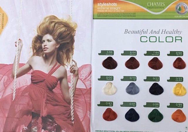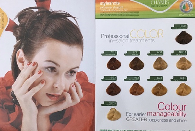 THUỐC NHUỘM TÓC CHAMIS 61 MÀU THỜI TRANG 100ml Công dụng: nhuộm màu tóc. Cam kết lên màu đẹp chuẩn, tóc bóng mượt không hư tổn. ***khách chọn màu theo số trên hình ảnh và lưu ý về cho shop. Thành phần: Deioniaed water, Cetearyl alcohol, Ceteareth-20, Ammonia, Oleyl alcohol, Oleic axit, Cetrimonium chloride, Glyceryl stearate, Disodium EDTA, Sodium sulfite, Isoascorbic acid, Pefume. Cách dùng: Pha kem nhuộm Chamis với Oxy trợ nhuộm đánh đều, dùng cọ thoa đều lên tóc để 30 phút, sau đó xả sạch bằng nước. Chú ý: không để sản phẩm dính vào mắt. Không sử dụng khi da đầu bị trầy xước vết thương hở. Bảo quản nơi thoáng mát, tránh xa tầm tay trẻ em. Hạn sử dụng 3 năm kể từ ngày sản xuất Sản xuất tại Việt Nam #myphamthanhmai #thuocnhuommautocthoitrang #lamdeptoc #mautocdep