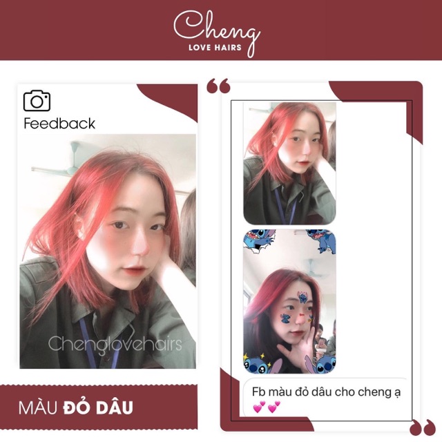 𝗡𝗵𝘂𝗼̣̂𝗺 𝘁𝗼́𝗰 𝗺𝗮̀𝘂 Đ𝗢̉ 𝗗𝗔̂𝗨 đ𝗲̣𝗽 𝗰𝗼́ 𝗺𝗼̣̂𝘁 𝗸𝗵𝗼̂𝗻𝗴 𝗵𝗮𝗶 𝗱𝗮̀𝗻𝗵 𝗰𝗵𝗼 𝗻𝗮̀𝗻𝗴 #cheng_dodau 🍓Nếu thường xuyên update các xu hướng làm đẹp hiện nay, bạn sẽ thấy vô vàn hashtag #strawberrybrunette và #strawberrybrown trên khắp các trang mạng xã hội. Và nhuộm tóc màu #đỏ_dâu bắt đầu trở thành “hiện tượng” đối với các tín đồ làm đẹp. 🍓Màu tóc này là sự kết hợp của hai tông màu đang được yêu thích hiện nay: nâu và đỏ. Nếu màu nâu quá “an toàn” và màu đỏ lại quá nổi bật thì tông màu đỏ dâu chính là sự kết hợp của 2 yếu tố và tạo cho bạn một màu tóc sáng đẹp. 🍓Với màu nhuộm này, mái tóc của bạn sẽ có màu gần giống như màu hồng đào, ngọt ngào và nhẹ nhàng, đem đến một vẻ đẹp quyến rũ, thu hút mọi ánh nhìn. 👉Inbox trực tiếp hoặc (.) để được Chenglovehairs tư vấn nhé các nàng!