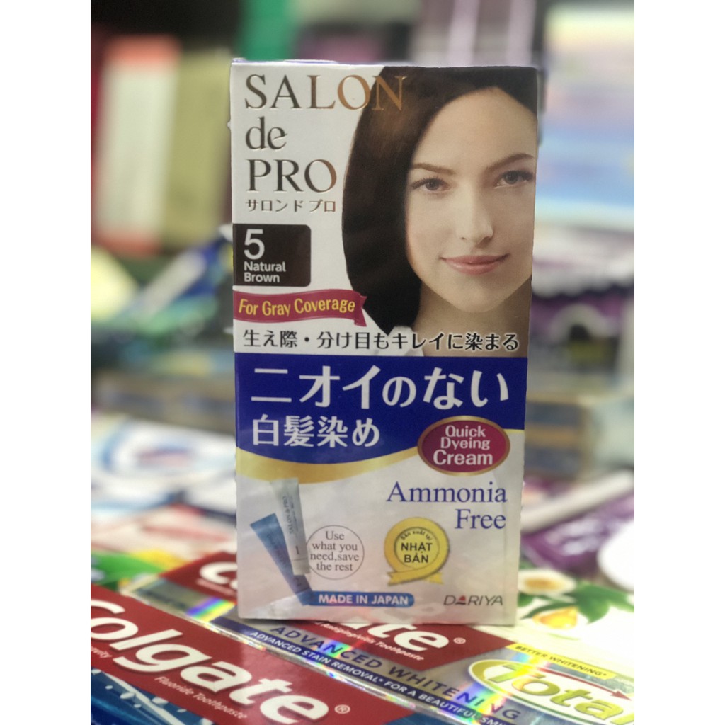 Thuốc nhuộm tóc Salon De Pro chuyên dùng cho tóc bạc. Sản phẩm không chỉ không có mùi khó chịu như những loại thuốc nhuộm khác mà còn có chất kết dính thấm sâu vào tóc hiệu quả nhanh chóng, màu lên tự nhiên, lâu phai. Sản phẩm gồm 4 thành phần chiết xuất tự nhiên giúp tăng cường dưỡng ẩm, cho tóc mềm mại, không khô rối. Dầu hoa trà giúp dưỡng tóc bóng mượt, hợp chất Protein tơ tằm giúp tóc dày và chắc khỏe, Protein thực vật bảo vệ tóc bởi các yếu tố bên ngoài, chiết xuất sữa ong chúa giúp dưỡng ẩm, cho tóc không bị xơ rối. Sản phẩm có thể dùng cho cả tóc đen bình thường. Hướng dẫn sử dụng và bảo quản Cần kiểm tra dị ứng 2 ngày trước khi nhuộm Cho cùng 1 lượng thuốc từ tuýp số 1 và 2 vào khay và trộn đều Thoa hỗn hợp thuốc trộn lên tóc bằng cây lược 2 mặt , chải đều bảo đảm không bị sót Để khoảng 15 phút, khi màu tóc đã như ý thì xả tóc lại bằng nước ấm cho đến khi tóc không ra màu nữa Sau đó gội lại bằng dầu gội và xả, lau tóc cho khô sạch Bảo quản nơi khô ráo, thoáng mát, tránh xa tầm tay trẻ em #thuocnhuomtoc#salondepro#benmau#lauphaimau