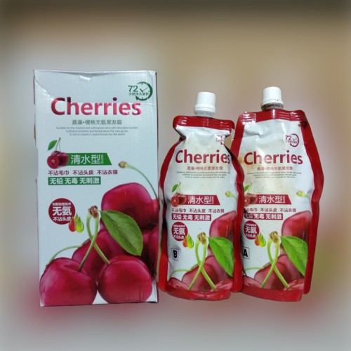 Nhuộm đen keratin tinh chất từ trái cherries chuyên gia phủ tóc bạc đến 99% không gây đỏ tóc sau thời gian nhuộm Thành phần: chiếc xuất từ tinh chất từ trái cherries, thảo mộc, linh chi...vv Ưu điểm: không bết dính da đầu, lên màu đen tự nhiên không có sắc đỏ như các loại nhuộm đen thông thường trên thị trường. Cách dùng: pha hai hỗn hợp lại với nhau theo tỉ lệ 1:1, thoa đều lên tóc, để 30-40 phút tuỳ vào chất tóc yếu hay khoẻ HSD : 03 năm kể từ ngày sản xuất. + Hộp : 500ml × 2