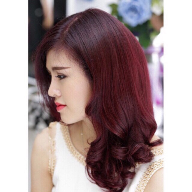 Thuốc nhuộm tóc màu đỏ tím + oxy + bao tay thuốc nhuộm màu đỏ tím bảo đảm độ bóng, mượt của tóc đặc biệt tóc bạn sẽ không bị khô xơ 🌸💁Cách nhuộm tóc tại nhà 1 - lấy 1 bát nhựa đỗ thuốc nhuộm và oxy trộn đều theo tỉ lệ 1:1 rồi dùng lược trộn thật đều 2 - dùng lược chải đều thuốc lên tóc , chải cách chân tóc 2-3cm vì phần chân tóc dễ lên màu hơn nên sẽ chãi thuốc lên sau khi đã chãi xong phần thân và đuôi tóc , màu đỏ tím phải để 75phút trước khi nhuộm bạn bôi vaseline hoặc son hoặc dưỡng da vào phần chân tóc và cổ để ko bị dính thuốc