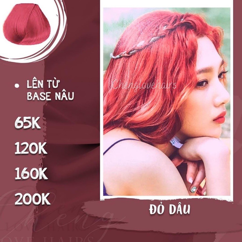 💘Mua thuốc nhuộm bạn sẽ được: 💥TẶNG NGAY MỘT LỌ TRỢ DƯỠNG 💥Thuốc nhuộm chất lượng cao, mùi hương dễ chịu, đảm bảo an toàn 💥Màu đỏ dâu phù hợp với mọi tone da 💥Lên màu từ base nâu 𝗡𝗵𝘂𝗼̣̂𝗺 𝘁𝗼́𝗰 𝗺𝗮̀𝘂 Đ𝗢̉ 𝗗𝗔̂𝗨 đ𝗲̣𝗽 𝗰𝗼́ 𝗺𝗼̣̂𝘁 𝗸𝗵𝗼̂𝗻𝗴 𝗵𝗮𝗶 𝗱𝗮̀𝗻𝗵 𝗰𝗵𝗼 𝗻𝗮̀𝗻𝗴 🍓Nếu thường xuyên update các xu hướng làm đẹp hiện nay, bạn sẽ thấy vô vàn hashtag #strawberrybrunette và #strawberrybrown trên khắp các trang mạng xã hội. Và nhuộm tóc màu #đỏ_dâu bắt đầu trở thành “hiện tượng” đối với các tín đồ làm đẹp. 🍓Màu tóc này là sự kết hợp của hai tông màu đang được yêu thích hiện nay: nâu và đỏ. Nếu màu nâu quá “an toàn” và màu đỏ lại quá nổi bật thì tông màu đỏ dâu chính là sự kết hợp của 2 yếu tố và tạo cho bạn một màu tóc sáng đẹp. 🍓Với màu nhuộm này, mái tóc của bạn sẽ có màu gần giống như màu hồng đào, ngọt ngào và nhẹ nhàng, đem đến một vẻ đẹp quyến rũ, thu hút mọi ánh nhìn. 👉Inbox trực tiếp hoặc (.) để được Chenglovehairs tư vấn nhé các nàng! —————
