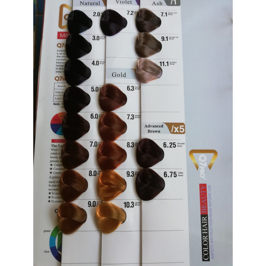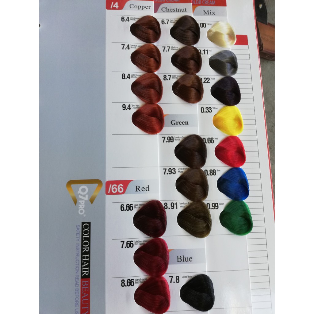 Sản phẩm được shop phân thành 2 link Thương hiệu: Q7 pro Xuất xứ: Việt Nam sản phẩm của công ty Maxpro Màu tự nhiên: 2/0,3/0, 50/, 6/0,7/0,8/0,9/0 từ 2/0 đến 5/0 phủ bạc 100% Màu tro:7/1, 9/1 11/1 Màu vàng: 6/3, 7/3, 8/3,9/3 Màu đồng: 6/4, 7/4 ,8/4, 9/4 Màu nâu đặc biệt: 6/25, 6/75 Màu đỏ: 6/66, 7/66, 8/66 Màu tím: 7/2 màu hạt dẻ: 6/7, 7/7, 8/7 Màu xanh: 4/7, 5/7, 6/7, Hệ thống màu mix (màu pha tăng độ sáng màu và nhuộm 2 light):0/11, 0/22, 0/33, 0/66, 0/88, 0/99, 0/00 Màu đặc biệt: 7/8 8/91 7/93 7/99 Công dụng: Nhuộm màu cho tóc, tạo độ sáng trung thực, giúp tóc mềm mượt Cach dùng: Pha kem nhuộm với oxi kem trợ nhuộm theo tỉ lệ 1:1. Tùy theo độ sáng của tóc mà dùng oxi kem (3,6,9 hay 12). Trộn đều hỗn hợp, bôi hỗn hợp lên tóc (cách chân tóc từ 1-2 mm), thời gian lưu kem trên tóc từ 15-40 phút tùy theo màu. Xả sạch kem bằng nước, sau đó dùng dầu xả xả lại để giữ màu cho tóc và giúp tóc bóng mượt hơn. Chú ý: Kiểm tra độ kích ứng da trước khi dùng. Tránh để hỗn hợp kem dính vào mắt. Tránh xa tầm tay trẻ em. Khách mua hàng trực tiếp liên hệ tại: NPP phụ liệu tóc Quang Vinh Đ/c: 668 Lê Hồng Phong, Phường Phước hải, TP Nha Trang, Tỉnh Khánh Hoà ĐT/Zalo: 0972.104.300 FB fanpage: phụ liệu tóc quang vinh Chuyên phân phối sỉ lẻ các mặt hàng phụ liệu tóc, nail, spa, mi và phun xăm Giá lẻ online rẻ hơn giá sỉ bạn mua tại cửa hàng nơi bạn sinh sống! Lưu ý: Giá trên chưa bao gồm cước vận chuyển, khách mua hàng cố gắng nhận giùm shop để hồi hàng tội shop lắm! xin cảm ơn rất nhiều ạ