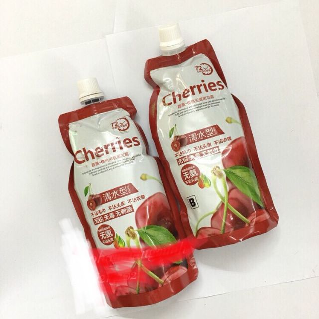 Nhuộm đen Cherries hộp/2 túi x 500ml Nhuộm tóc đen Cherries chuyên gia phủ tóc bạc Nhuộm Phủ bạc Đen Cherries 500ml x 2 Nhuộm đen keratin tinh chất từ trái cherries chuyên gia phủ tóc bạc đến 99% không gây đỏ tóc sau thời gian nhuộm Thành phần: chiếc xuất từ tinh chất từ trái cherries, thảo mộc, linh chi...vv Ưu điểm: không bết dính da đầu, lên màu đen tự nhiên không có sắc đỏ như các loại nhuộm đen thông thường trên thị trường. Cách dùng: pha hai hỗn hợp lại với nhau theo tỉ lệ 1:1, thoa đều lên tóc, để 30-40 phút tuỳ vào chất tóc yếu hay khoẻ HSD : 03 năm kể từ ngày sản xuất. + Hộp : 500ml × 2