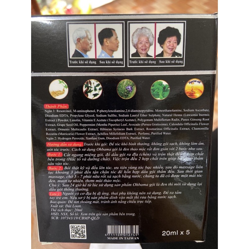 Gói 20ml Chỉ cần gội là tóc đen mướt phủ bạc tự nhiên, thơm mùi thảo mộc dễ chịu. Cách dùng: xem hướng dẫn trên bao bì
