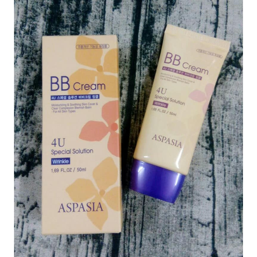 Kem nền BB Cream 4U Special Solution Aspasia là một loại kem BB đa chức năng, giúp che đậy những vùng da thật sẫm màu, đốm nâu, tàn nhang... Đây là lọai kem nền đa năng có 5 chức năng: trắng da và săn da, bảo vệ da, chống nhăn, kem lót trang điểm, kem nền. Sản phẩm chiết xuất thiên nhiên nên rất an toàn và dịu nhẹ với làn da, phù hợp với nhiều loại da, đặc biệt da nhờn, da khô, da mụn. Kem giàu dưỡng chất, vitamin và khoáng chất, nhẹ nhàng chăm sóc mang lại cho bạn một làn da vẻ thật rạng rỡ và trắng sáng hơn . Kem giúp cân bằng các độ ẩm, giúp tạo độ thông thoáng da, không gây ra độ bóng nhờn.
