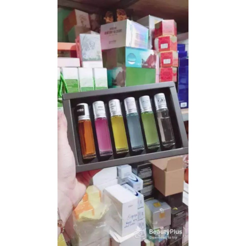 Set nước hoa 6 chai dạng lăn - ---------------- 🐛 Sở hữu bộ 6 chai nước hoa với 6 mùi khác nhau 🐣 Hương thơm nhẹ nhàng 🍀 Thành phần 100% thiên nhiên; màu sắc có thể thay đổi theo set 🌭 Phong cách quyến rũ; gợi cảm Hương liệu Nhập khẩu 100% 👒 Thiết kế chai đựng bắt mắt, được gói trong hộp sang trọng. 🍓 Phù hợp với tất cả mọi người, đặc biệt thích hợp cho các bạn muốn sử dụng và thay đổi nhiều mùi hương ưa thích. 🍒 Thiết kế nhỏ gọn, bạn có thể bỏ vào ví, túi xách, mang đi lại thuận tiện hơn rất nhiều. 🌼 Mùi hương được giữ thơm lâu trong nhiều giờ liền.