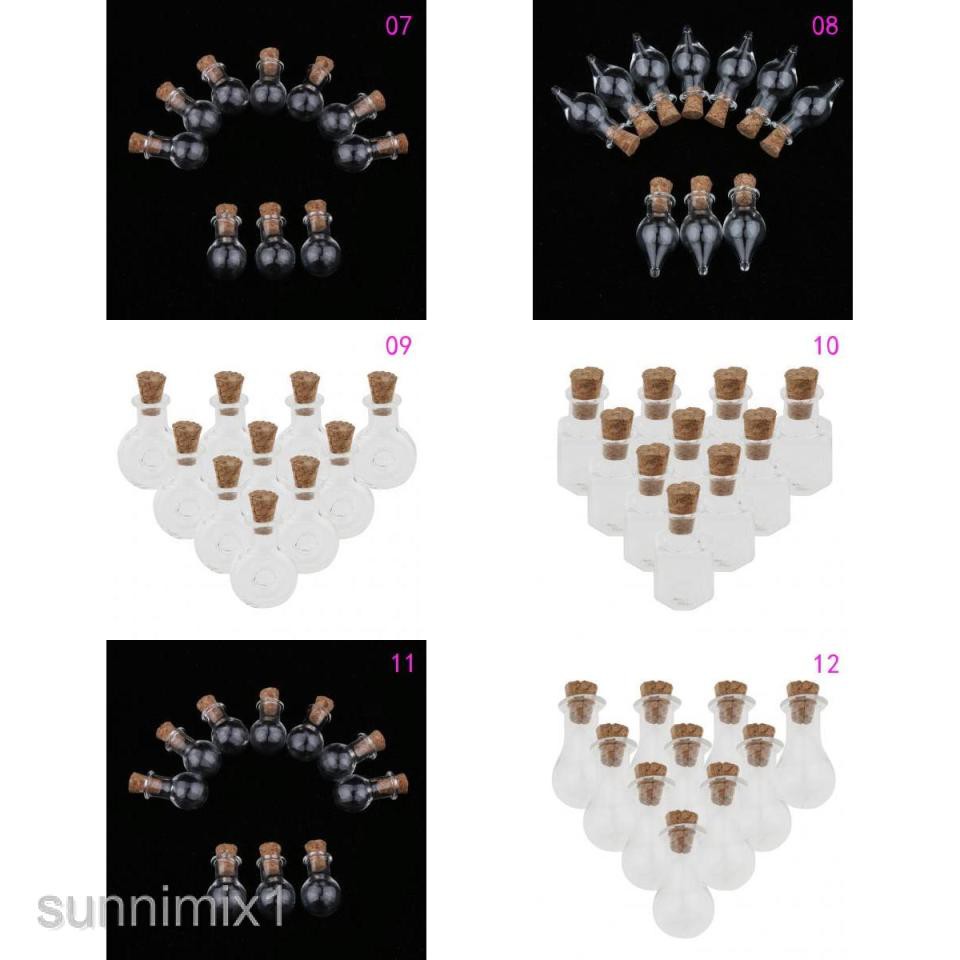 Description: Glass bottles jars with cork stoppers Good to DIY it as necklace pendant, drift wishing bottles or perfume bottles, also suitable for decoration or send gift to friends. Transparent glass material. Homemade and a flaw in some bottles. Capacity: approx. 2ml Height: approx. 3cm/ 1.2 inch Package Includes: 10x Bottles Note: Ropes and Flowers in the pictures is NOT included
