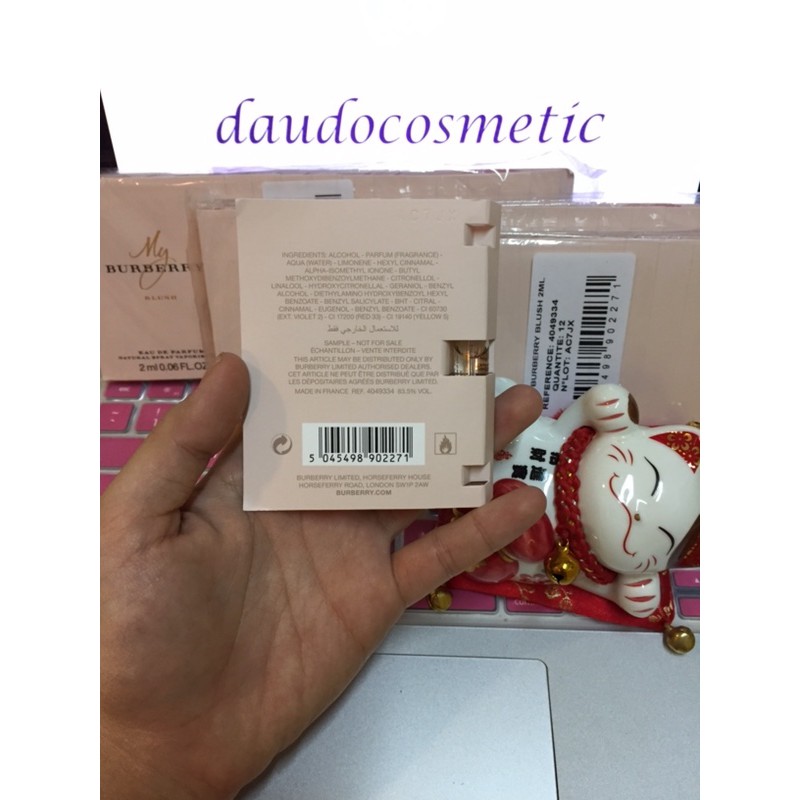 💃💃💃 [ vial ] nước hoa My Burberry Blush EDP 2ml cho các nàng cực hot nha !!!! ✅✅✅ Hàng mới về nóng hổi luôn. Em này là phiên bản mới nhất của dòng My Burberry rất thành công của Burberry House, mới ra năm 2017 sau 2 phiên bản trước đó là EDT và bản Black EDP. 🌸🌸🌸 Thoáng nhẹ chút mùi hương của phiên bản tiêu chuẩn, đến với em này là một điều gì đó mang màu sắc tươi hơn, sáng hơn, lấp lánh như những hạt sương trên đồng cỏ xanh muốt vào một sáng trong lành. Hẳn là vậy vì ngửi qua em ấy là mùi ngọt ngào của lựu và táo xanh, cái ngọt của note fruity luôn cho ta cái cảm giác dễ chịu, nhẹ nhàng và rất fresh. Hít sâu hơn, cảm nhận như thể một cánh đồng hoa đang nở những nụ mới trong buổi sớm mai, là hồng, là nhài, là cả em hoa họ đậu, một mùi hương the the là lạ. Vẫn là em ấy, một mùi hương dịu dàng, nhẹ nhàng, và như mơ. Là em, My BBR Blush. #Perfume #nuochoa #nuochoamini #mini #xachtay #auth #chinhhang #chanel #bvlgari #bvlgarigoldea #freeship #mienphivanchuyen #hc #daudocosmetic