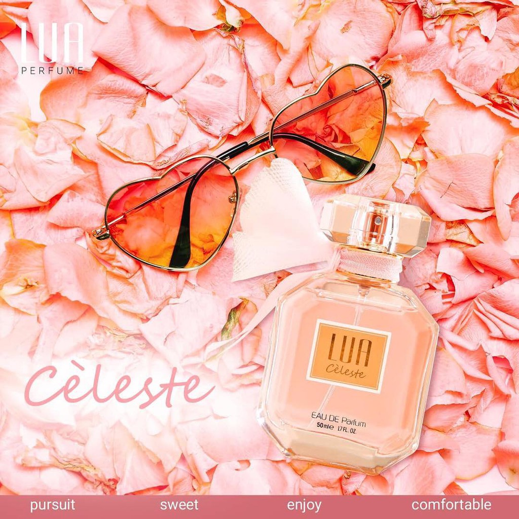 CELESTE, LỌ NƯỚC HOA DÀNH RIÊNG CHO CÔ NÀNG TIỂU THƯ YÊU MÙI HƯƠNG NHẸ NHÀNG, TINH TẾ. Phong cách: Tự nhiên, tinh tế. Phân Loại: Nước Hoa Nữ Nồng độ: Eau De Parfum (EDP) Độ lưu hương: Lâu – 8 giờ đến 12 giờ Độ toả hương: Xa – Toả hương trong vòng bán kính 2 mét Mùi hương đặc trưng với 3 tầng hương: Phong cách: Nữ tính, gợi cảm, tinh tế Hương đầu: Quả đào, hoa lan Nam Phi Hương giữa: Hoa chi mộc tê Hương cuối: Ca cao. Xạ hương. Nước Hoa Lua Cèleste 50ml mới 🌹Ngay từ khi cầm lọ celeste lên phái đẹp sẽ bị thôi miên bởi vẻ yểu điệu, thục nữ từ dải ruy băng màu hồng đựơc hãng #LUA khéo léo thắc trên cổ chai rồi nhỉ. 🌹Kế đến là mùi hương có chút dư vị ngọt ngào của trái đào, chút nhẹ nhàng thoang thoảng của hoa lan Nam Phi, hoa mộc tê hòa quyện cùng mùi thơm nồng nàn, phảng phất của cao cao. Cho nàng cảm giác hứng khởi, sảng khoái, phấn chấn suốt cả ngày dài. 📢Thưởng thức mùi hương của CELESTE thì quá dễ, hãy gọi cho LUA Nước Hoa Lua Cèleste 50ml mới
