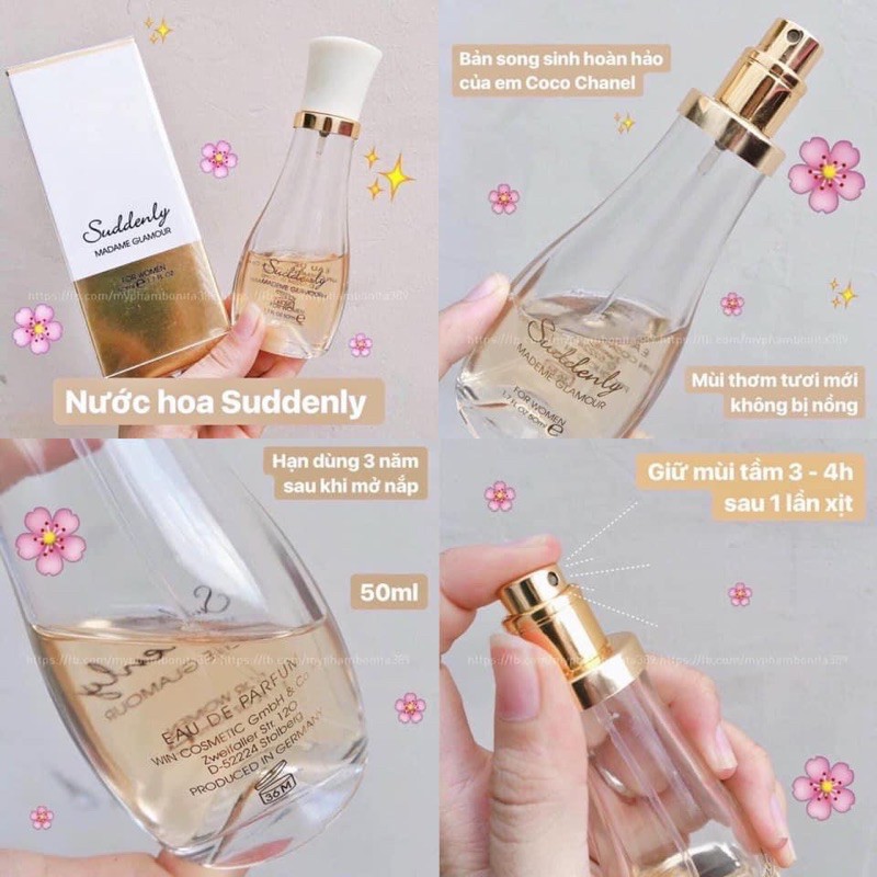 🌸Nước hoa #SUDDENLY 50ml Giống #CHANELCOCO ĐẾN 99% NHƯNG GIÁ THÀNH CHỈ BẰNG 1/100 Bám Mùi tận 2-3 ngày đấy ạ 😃 🔥MÙA NÀY THÌ EM ẤY LẠI CÀNG ĐƯỢC LÊN NGÔI 🔝Giá quá rẻ cho 1 chai nước hoa hàng hiệu . Mua xài hay làm quà tặng đều quá Okay👌🏻 SUDDENLY 1 người xịt -5 người mê Không tự nhiên gì mà ngập tràn review em Suddenly đến vậy 🔝10 người mua, cả 10 đều khen nhé ! Bao thơm - Bao giữ mùi - Bao chuẩn Auth 100% 🔝Xuất sứ từ Đức 👏🏻Nàng sẽ không bao giờ ân hận vì đã bỏ tiền mua nó đâu 👏🏻Mùi thơm vô cùng sang chảnh như dòng nước hoa nổi tiếng Chanel Coco Mademoiselle: là loại nước hoa có chứa tinh dầu thơm kết hợp với hương vị lá quýt tươi mát cùng mùi cây cỏ thực vật rất sang trọng và quyến rũ. 20