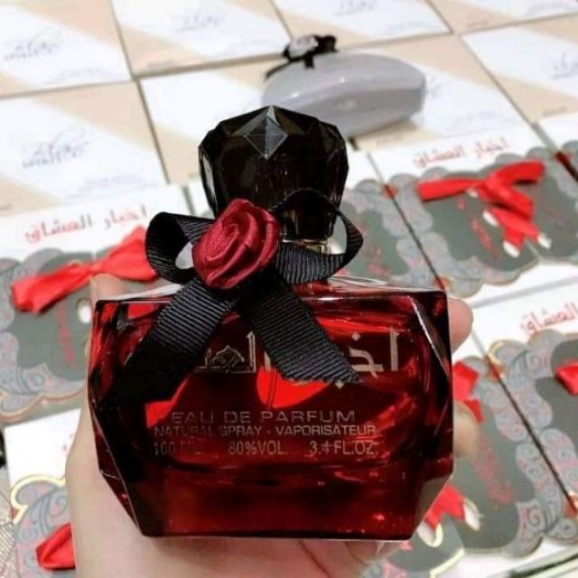 Nước hoa Dubai Akhbar Al Ushaq Ngọt Ngào Nữ Tính 100ml Độ lưu hương: Tốt – 10 giờ đến 12 giờ Độ tuổi phù hợp: > 20 tuổi Độ toả hương: Xa – Bán kính 2m Đặc điểm mùi hương: Ngọt ngào, nữ tính, quyn rũ Hương đầu: Quả mâm xôi, Dâu tây, Táo, Nho Hương giữa: Vani, gỗ trầm hương, dừa Hương cuối: Hoa hồng, Lily, Freesin.