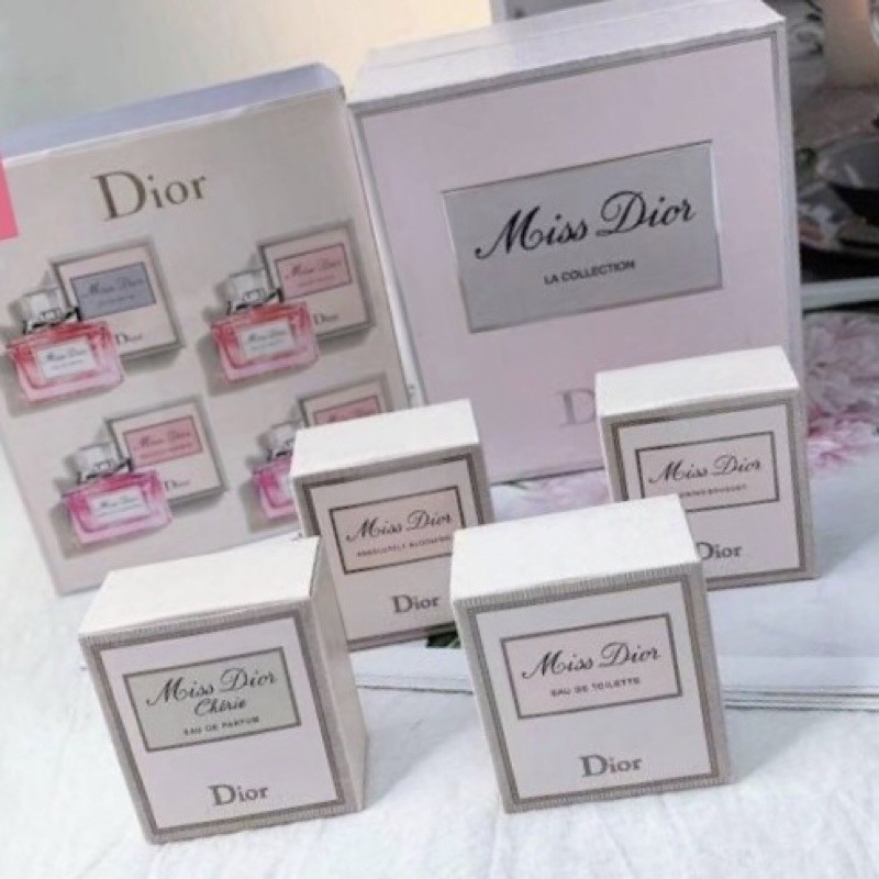 Set Nước Hoa DIOR mini MISS DIOR La Collection 4 × 5ml. Dòng : Miss Dior mini 4 chai. Miss Dior EDT 5ml. Miss Dior EDP 5ml. Miss Dior Absolutely Blooming EDP 5ml. Miss Dior Blooming Bouquet EDT 5ml.