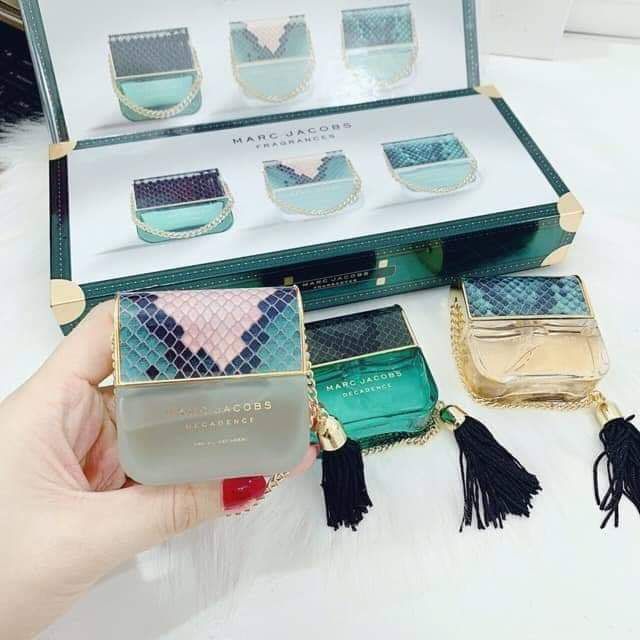 Bộ 3 chai 3 mùi hàng Suepr siêu dai 25ml/1chai 3 chai/ Bộ. Hàng hiếm Từ sau thành công của Marc Jacobs Decadence ra mắt vào năm 2015,khi lần đầu tiên nước hoa với hương thơm "trưởng thành" đã hiện thân quyến rũ với nét tinh tế, thì tháng 9 năm 2016, phiên bản nhẹ hơn được khởi xướng Divine Decadence. Một biểu tượng lấp lánh của sự quyến rũ và sang trọng, Diveine Decadence tạo ra niềm đam mê tột cùng về một lối sống, một cách sống, vượt qua độ tuổi và phong cách. Nó gây nghiện, bạn không thể thấy đủ khi chạm vào. Diveine Decadence là một mùi hương hoa rạng rỡ, sang trọng và gợi cảm. Một khía cạnh mới của quyến rũ và sang trọng được gợi lên bởi các note hương của sâm banh lấp lánh, cam bergamot và hoa cam kem. Hương hoa phong phú,trong đó bao gồm hoa sơn chi,hoa tú cầu và cây kim ngân hoa ,đang mang lại sự sang trọng nữ tính cùng hòa quyện với hổ phách lỏng, nghệ tây và vani trong hương thơm nền rạng rỡ.#nuochoa#nuochoachinhhang