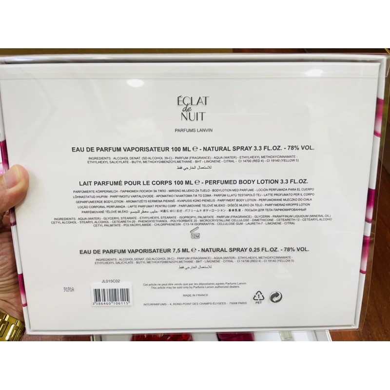 Sản phẩm Bộ Nước Hoa Chính Hãng Lanvin Eclat De Nuit 100Ml+7.5Ml+100Ml hiện đang được bán tại Shopee.