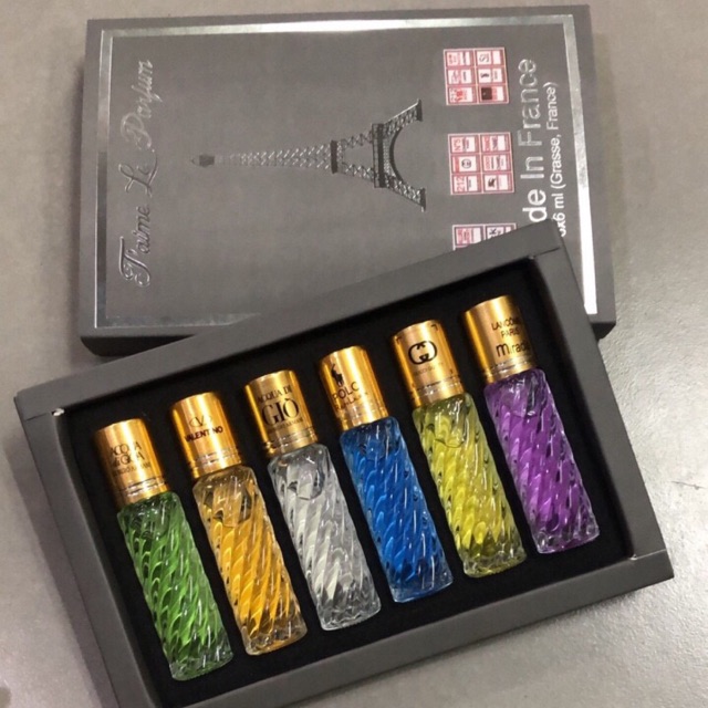 Giá sỉ mới : 37k Từ 12 đến 50 hộp : 35k Hộp 6 chai nước hoa mẫu thử Nhiều thương hiệu nổi tiếng của Pháp ...hương thơm nồng nàn, quyến rũ -Sở hữu bộ 6 chai nước hoa dạng xịt là bạn đã sở hữu bí quyết đơn giản để mình trở nên lôi cuốn, quyến rũ và gợi cảm mọi lúc, mọi nơi -Hương thơm nhẹ nhàng -Thành phần 100% thiên nhiên; màu sắc có thể thay đổi theo set -Phong cách quyến rũ; gợi cảm Hương liệu Nhập khẩu 100% - Thiết kế chai đựng bắt mắt, được gói trong hộp sang trọng. - Phù hợp với tất cả mọi người, đặc biệt thích hợp cho các bạn muốn sử dụng và thay đổi nhiều mùi hương ưa thích. - Sử dụng nước hoa mẫu thử giúp bạn cảm nhận rõ hơn từng lớp mùi hương trong thời gian dài và có thể có được lựa chọn chính xác mùi hương ưa thích cho mình. - Thiết kế nhỏ gọn, bạn có thể bỏ vào ví, túi xách, mang đi lại thuận tiện hơn rất nhiều. - Mùi hương được giữ thơm lâu trong nhiều giờ liền. - Thích hợp để làm quà tặng cho bạn bè, người thân - Hộp: 6 chai ( 1 chai 6ml) Hộp 6 chai nước hoa mẫu thử 6ml chai dạng xịt -L