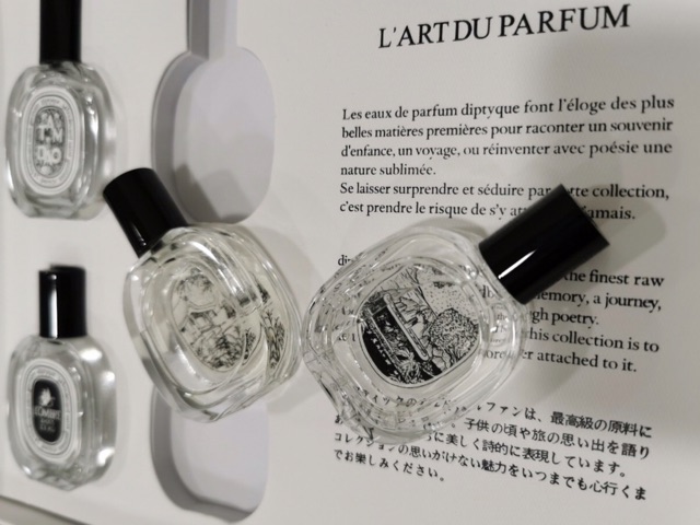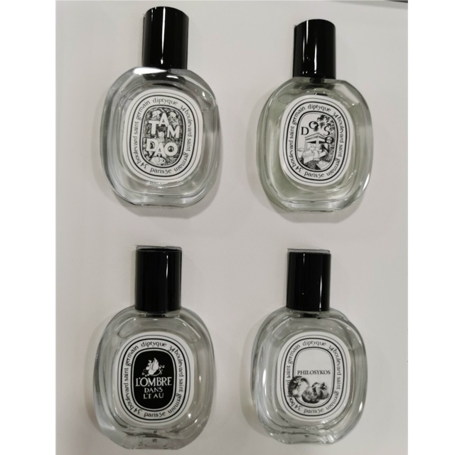 Dòng nước hoa đầu tiên thương hiệu Diptyque mang tên L`Eau ra mắt năm 1968. L`Eau được tạo ra dựa trên công thức lâu đời của những nhà chuyên gia nước hoa Anh. Cả 3 nhà sáng lập thương hiệu Diptyque đều có sở thích đi du lịch nên hầu hết các dòng nước hoa đều lấy cảm hứng từ những chuyến đi của họ. Hãng nước hoa Diptyque hiện có khoảng 35 loại nước hoa, dòng nước hoa đầu tiên ra mắt năm 1968 và những dòng nước hoa mới nhất được tung ra thị trường từ năm 2015. Hãng Diptyque hợp tác cùng những chuyên gia nước hoa Fabrice Pellegrin, Desmond Knox-Leet, Serge Kalouguine, Yves Coueslant, Christiane Gautror, Olivia Giacobetti và Olivier Pescheux. Nước hoa Diptyque có tổng cộng 42 chai trong thế giới nước hoa của perfumista.vn. Trong đó, Diptyque có 6 chai nước hoa nữ, 36 chai nước hoa unisex (dành cho cả nam lẫn nữ). Dòng nước hoa được ra mắt sớm nhất vào năm 1968 và gần đây nhất là vào năm 2017. Nước hoa Diptyque được hợp tác và điều chế bởi những nhà pha chế nổi tiếng như Olivia Giacobetti, Christian, Fabrice Pellegrin, Olivier Pescheux, Serge Kalouguine, Desmond Knox-Leet, Yves Coueslant. Diptyque nằm trong TOP 100 hãng nước hoa nổi tiếng nhất thế giới.