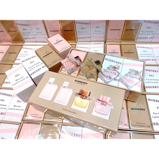 ♥️Set nước hoa mini BURBERRY (5ml x 4c), đã về lại, toàn những mẫu hot thôi. 😍😍🥰🥰 Thơm/ sang/ giá lại vô cùng đẹp xinh 🥺🥺🥺 - my vàng edp 5ml - my blush edp 5ml - bbr her edp 5ml - bbr blossom edt 5ml