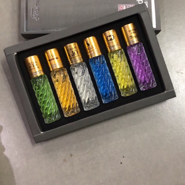 Giá sỉ mới : 37k Từ 12 đến 50 hộp : 35k LƯU Ý : HÀNG LOẠI NÀY DỄ BAY HƠI , NÊN MỖI CHAI ĐỀU KHÔNG ĐẦY NƯỚC - KHÁCH NÀO ĐỒNG Ý MỚI MUA TRÁCH PHIỀN PHỨC 2 BÊN . Hộp 6 chai nước hoa mẫu thử Nhiều thương hiệu nổi tiếng của Pháp ...hương thơm nồng nàn, quyến rũ -Sở hữu bộ 6 chai nước hoa dạng xịt là bạn đã sở hữu bí quyết đơn giản để mình trở nên lôi cuốn, quyến rũ và gợi cảm mọi lúc, mọi nơi -Hương thơm nhẹ nhàng -Thành phần 100% thiên nhiên; màu sắc có thể thay đổi theo set -Phong cách quyến rũ; gợi cảm Hương liệu Nhập khẩu 100% - Thiết kế chai đựng bắt mắt, được gói trong hộp sang trọng. - Phù hợp với tất cả mọi người, đặc biệt thích hợp cho các bạn muốn sử dụng và thay đổi nhiều mùi hương ưa thích. - Sử dụng nước hoa mẫu thử giúp bạn cảm nhận rõ hơn từng lớp mùi hương trong thời gian dài và có thể có được lựa chọn chính xác mùi hương ưa thích cho mình. - Thiết kế nhỏ gọn, bạn có thể bỏ vào ví, túi xách, mang đi lại thuận tiện hơn rất nhiều. - Mùi hương được giữ thơm lâu trong nhiều giờ liền. - Thích hợp để làm quà tặng cho bạn bè, người thân - Hộp: 6 chai ( 1 chai 6ml) Hộp 6 chai nước hoa mẫu thử 6ml chai dạng xịt -L