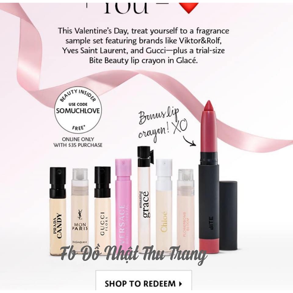 Nhà e mua fullsize và gom đơn trên Sephora số lượng nên được tặng it set hàng xịn xò, ngon nghẻ thế này. Set gồm 7 loại nước hoa mini nữ đến từ các hãng nổi tiếng đc ưa chuộng nhất tặng kèm 1 son Crayon như hình. Chỉ 320k/set. Nội dung các set là như nhau, e chỉ có gần 30 set thôi, nhận đủ khách là hết hàng ạ, hàng hot như này nhà e chỉ hết trong vòng 1 ngày nên chị em book nhanh nhé ạ. Riêng các chai mini này chai lẻ nhiều shop đã bán đến 50-60k rồi. Nên mua cả set nhà em 8sp là siêu siêu lời nhé ạ!