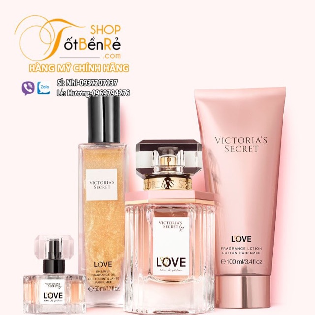 Gift set Victoria Secret Love 4pcs Gồm: EDP 50ml + Mini edp 7.5ml + Gel tắm dưỡng 100ml + Dầu dưỡng thể ánh nhũ 50ml Cho đến giờ, chưa có một thương hiệu nào thành công được như Victoria Secret trong việc đưa vẻ đẹp gợi cảm thành một biểu tượng. Những đêm trình diễn “hấp dẫn nhất hành tinh”, những “thiên thần của Victorias Secret” với những cặp chân dài quyến rũ nhất thế giới, những bộ đồ lót đắt giá nhất được trình diễn với những người mẫu nóng bỏng nhất… tất cả đã làm nên đặc trưng của Victoria Secret.... Mùi hương của nước hoa Victoria Secret cũng đầy gợi cảm như các thiên thần của họ trên sản catwalk. Fragrance Gift Set là sự kết hợp hoàn hảo giữa nước hoa, sữa tắm và dầu dưỡng thễ ánh nhũ. Kết hợp 3 sản phẩm này sẽ làm xao xuyến mọi con tim ngay từ lần đầu gặp gỡ đầu tiên.Thích hợp tặng cho những người yêu thương hoặc tặng vào những dịp lễ, tết và sinh nhật Xuất xứ: Hàng Mỹ chính hãng authentic perfume. Totbenre.com chuyên sỉ lẻ toàn quốc Hàng Mỹ chính hãng - Nhận order và mua hộ hàng Mỹ từ các website / store của Mỹ Hotline Zalo, Viber: #Lẻ: 0969 794 276 - Hương - Free ship tp.HCM hóa đơn từ 1 triệu #Sỉ : 0937 207 137 - Nhi - phân phối sỉ toàn quốc Facebook: www.facebook.com/totbenre #heavenly #love #bombshell #victoriasecretbombshell #nuochoabombshell #nuochoavictoriasecret