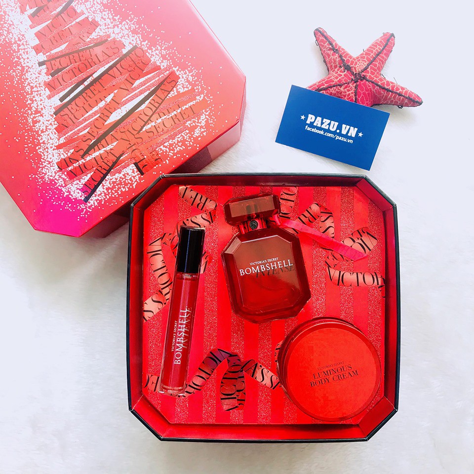 Set Victoria's Secret Bombshell Intense Gồm: ✔️ Nước Hoa Victoria's Secret Bombshell Intense 50ml ✔️ Nước Hoa Victoria's Secret Bombshell Intense 7ml ✔️ Body Cream Victoria's Secret Bombshell Intense 85g 🌹Bombshell Intense cải tiến với độ lưu hương ngây ngất đầy mê hoặc .Lấy cảm hứng từ màu đỏ hoàn hảo, Bombshell Intense là hiện thân của tất cả các màu sắc huyền bí mê hoặc . 🌹 Mùi hương từ quả Cherry mang đến cảm giác ngọt ngào, tinh tế ở nốt hương đầu. Ở nốt hương giữa và cuối, một hỗn hợp quyến rũ gồm hoa Mẫu Đơn Đỏ và Vanilla đã tôn lên phong các tiểu thư hoàn hảo của em ấy. 🌹 Bộ sản phẩm này sẽ làm xao xuyến mọi con tim ngay từ lần đầu gặp gỡ đầu tiên.Thích hợp tặng cho những người yêu thương hoặc tặng vào những dịp lễ, tết và sinh nhật ▪️ Mùi Hương Đặc Trưng: Cherry tươi tốt, Hoa mẫu đơn đỏ và Vani 🌹 Phong Cách: Quyến rũ , Lôi Cuốn Đầy Nóng Bỏng ================================== CUNG CẤP SỈ & LẺ NƯỚC HOA, THỰC PHẨM CHỨC NĂNG NHẬN ORDER HÀNG ÚC – MỸ - NHẬT Website: Pazu.vn Hotline: 0939.658.608 Add: 448/1 Trần Hưng Đạo, P.2, Q.5, tphcm