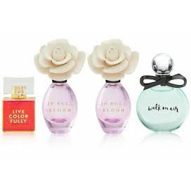 Set 4 chai nước hoa KATE SPADE 4pc Replica Coffret Set bao gồm : 2 chai Bloom Blush 0.25 oz 1 chai Live Color Fully 0.25 oz 1 chai Walk on air 0.25 oz Nằm trong hộp đựng xinh xắn Xuất xứ USA Nhập khẩu USA Thương hiệu Kate Spade