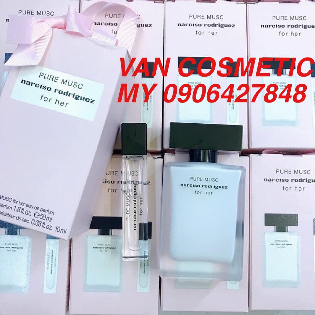 👉🏻Set Nước Hoa Narciso Rodriguez Pure Musc For Her EDP ( 50ML + 10ML) 🍓Giá web $108 (2tr5) sale 1TR8 🍓Tình trạng 100%: Fullsize, Full box, mới, date xa xôi 🍓Trả hàng: Có sẵn SG SHOPEE ĐANG SALE NH LẮM MẤY CHẾ: LINKS SHOPEE : https://shopee.prf.hn/click/camref:1101ldMpf/destination:https%3A%2F%2Fshopee.vn%2Funiversal-link%2Fvan_cosmetic_my VAN COSMETIC MY CALL,SMS,VIBER,ZALO,IB :0906427848 ADD 1: 14C/2 NGUYỄN DUY -P9-Q8-SÀI GÒN ADD ; 31A TRẦN NHẬT DUẬT-NHA TRANG 💋Pure Musc là dòng nước hoa mới toanh của thương hiệu đình đám Narciso Rodriguez, được ra mắt trong năm 2019. Mùi hương này được lấy cảm hứng từ vẻ đẹp thuần khiết, thanh tao của người mẫu Julia Bergshoeff. Bộ sản phấm Nước Hoa Narciso Rodriguez Pure Musc sẽ làm xao xuyến mọi con tim ngay từ lần đầu gặp gỡ đầu tiên.Thích hợp tặng cho những người yêu thương hoặc tặng vào những dịp lễ, tết và sinh nhật. Bộ sản phẩm bao gồm: 1. Nước hoa Narciso Rodriguez Pure Musc EDP 50ML ( 1850K) 2. Nước hoa Narciso Rodriguez Pure Musc EDP 10ML ( 520K) ➡️Với nốt hương chính là mùi xạ hương mãnh liệt, sản phẩm khuấy động hương sắc mùa hè bằng những nốt hương trầm ấm áp pha trộn với hương hổ phách, hoa hồng, hương gỗ cashmeran thanh lịch và nồng cháy chắc chắn sẽ “đốn gục” trái tim bất cứ cô nàng nào thử qua. Pure Musc có thể đánh thức mọi giác quan và bao bọc toàn bộ cơ thể. ➡️Nước hoa Pure Musc được phát triển bởi chuyên gia nước hoa Sonia Constant và có các nốt hương của hoa trắng, xạ hương và cashmeran. Chai tông màu đen và trắng phản ánh sự khéo léo tinh tế và sự quyến rũ của hương thơm mà nó chứa bên trong. 💦Xạ hương luôn là nguồn cảm hứng bất tận của Narciso Rodriguez Pure Musc với những biến tấu thú vị ko ngừng. Và đến lần này là xạ hương thuần khiết tương xứng với sự tinh khiết của màu đen và trắng! Nghe sao cứ khiêu khích và thách thức đến thế! Mùi hương đặc trưng: Hoa trắng, xạ hương, gỗ cashmere. Phong cách: Quyến rũ, cá tính