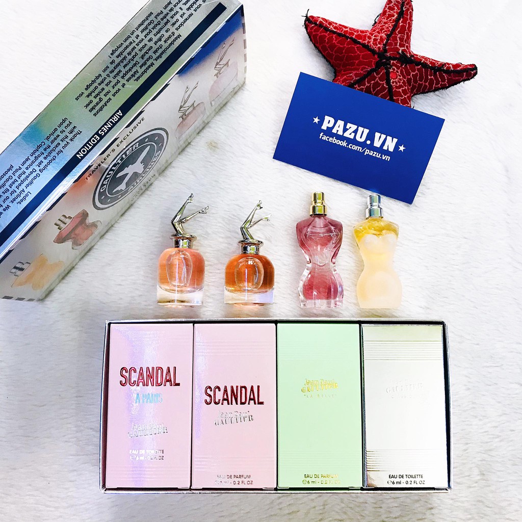𝐒𝐞𝐭 𝐉𝐞𝐚𝐧 𝐏𝐚𝐮𝐥 𝐆𝐚𝐮𝐥𝐭𝐢𝐞𝐫 𝐀𝐢𝐫𝐥𝐢𝐧𝐞𝐬 😍‼ Set Gồm 4chai 6ml mang đậm chất cô gái sở hữu vị ngọt ngào chết người của quý cô kiểu Pháp, xác thủ tình trường. Cái tên nói lên tất cả, Nàng không cần lao vào vồ vập các anh chàng bởi con mồi sẽ không thể thoát khỏi tay Nàng được đâu. 𝐒𝐜𝐚𝐧𝐝𝐚𝐥 𝐄𝐚𝐮 𝐃𝐞 𝐏𝐚𝐫𝐟𝐮𝐦 𝟔𝐦𝐥 ❥ Cô gái Scandal gợi cảm, sexy ấy khiến mọi người đàn ông bối rối, để rồi chẳng thể ngăn cản được sự cám dỗ trong mùi hương đầy mê hoặc đó, mọi thứ sẽ xảy ra một cách tự nhiên nhất, mà ngay cả chính cô nàng này cũng chẳng bao giờ có thể ngờ tới bởi sự ngọt ngào, quyến rũ, gợi cảm, sexy một cách mộng mị như chính 𝐒𝐜𝐚𝐧𝐝𝐚𝐥. ▪️ Hương đầu: Cam đỏ, Quýt hồng ▪️ Hương giữa: Mật ong, Chi dành dành, Hoa cam ▪️ Hương cuối: Sáp ong, Hoắc hương, Caramel 𝐒𝐜𝐚𝐧𝐝𝐚𝐥 𝐀 𝐏𝐚𝐫𝐢𝐬 𝐄𝐚𝐮 𝐃𝐞 𝐓𝐨𝐢𝐥𝐞𝐭𝐭𝐞 𝟔𝐦𝐥 ❥ Là một phiên bản mới nhất trong bộ sưu tập nước Scandal đình đám của hãng. Một phiên bản với mùi hương nhẹ nhàng hơn, trẻ trung hơn, và tươi mới hơn, một Scandal rúng động của những ngày nóng nực hẳn là một đề tài mà chẳng ai có thể bỏ qua. ▪️ Hương đầu: Trái lê ▪️ Hương giữa: Hoa nhài ▪️ Hương cuối: Mật ong 𝐋𝐚 𝐁𝐞𝐥𝐥𝐞 𝐄𝐚𝐮 𝐃𝐞 𝐏𝐚𝐫𝐟𝐮𝐦 𝟔𝐦𝐥. ❥ 𝐋𝐚 𝐁𝐞𝐥𝐥𝐞 xa hoa và gợi cảm trong khu vườn địa đàng của 𝐉𝐞𝐚𝐧 𝐏𝐚𝐮𝐥 𝐆𝐚𝐮𝐥𝐭𝐢𝐞𝐫. 𝐋𝐚 𝐁𝐞𝐥𝐥𝐞 chính là vẻ đẹp tự nhiên sinh ra để dành cho những cô gái xinh đẹp biết yêu chiều bản thân, những người muốn cảm nhận phút giây thăng hoa của tình yêu đích thực ▪️ Hương đầu: Trái Lê ▪️ Hương giữa: Cỏ Vetiver ▪️ Hương cuối: Vani 𝐂𝐥𝐚𝐬𝐬𝐢𝐪𝐮𝐞 𝐄𝐚𝐮 𝐃𝐞 𝐓𝐨𝐢𝐥𝐞𝐭𝐭𝐞 𝟔𝐦𝐥. ❥ Mang hương thơm phương Đông đầy mê hoặc. Một mùi hương ngọt ngào, đánh thức cảm xúc của bạn. Và không chỉ bạn - hãy tưởng tượng rằng mọi người đều có thể nhận ra bạn ngay cả khi họ nhắm mắt lại. ▪️ Hương đầu: hoa cam, hồi hương, cam quýt, lê, hoa hồng, cam bergamot ▪️ Hương giữa: hoa diên vĩ, gừng, quả mận, hoa lan, ngọc lan tây, hoa huệ ▪️ Hương cuối: hổ phách, xạ hương, vani, quế, gỗ đàn hương ================ Ship hàng toàn quốc. CUNG CẤP SỈ & LẺ NƯỚC HOA, MỸ PHẨM, THỰC PHẨM CHỨC NĂNG NHẬN ORDER HÀNG MỸ - ÚC - NHẬT - ANH Website: Pazu.vn Hotline: 0939.658.608 Add: 448/1 Trần Hưng Đạo, P.2, Q.5, Tp.HCM