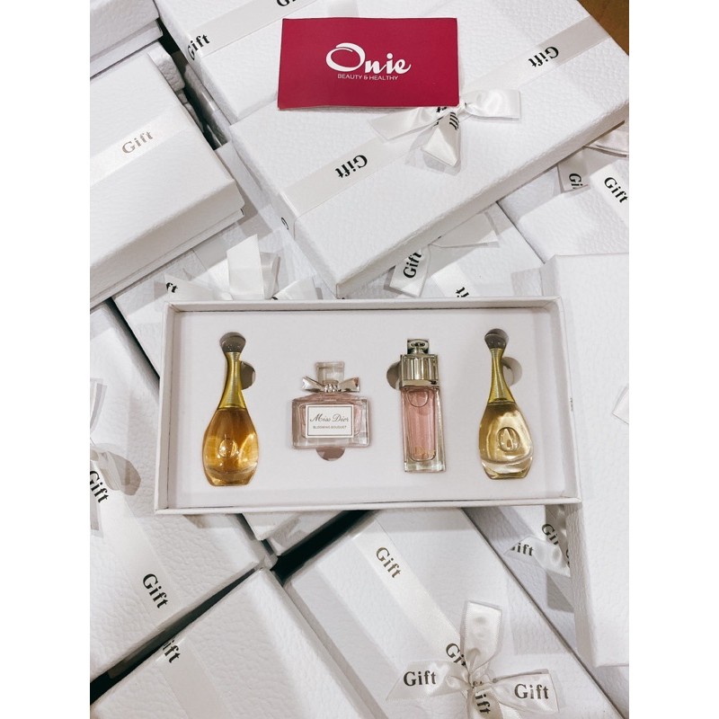Set Dior mini 4 chai chính hãng giá siêu tốt luôn - 1 Jadore 5ml. - 1 Miss Dior Blooming Bouquet 5ml. - 1 Dior Addict 5ml. - 1 jadoje absolu ❤️Quà tặng hợp lý ✨Thiết kế chai sang trọng, tinh tế dạng mini để có thể dễ dàng mang theo bên mình. ✨Hộp trắng tinh khiết sang trọng, thắt nơ, thích hợp làm quà tặng. ✨Mùi hương nhẹ nhàng, thanh mát, sang trọng giúp các cô gái luôn tự tin và nổi bật ở bất cứ đâu. ✨✨Set nước hoa bao gồm ba dòng sản phẩm: Miss Dior, Dior J’adore EDP, Dior Addict và Dior J’adore EDT #Dior #nuochoadior #setnuochoadior