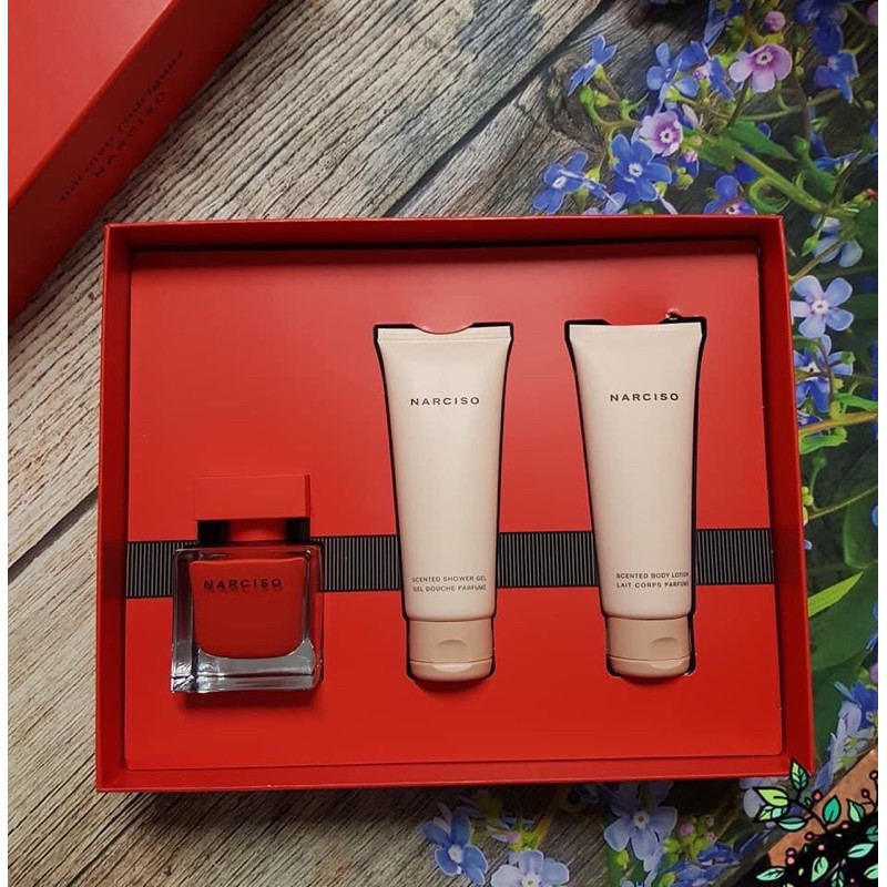 Cùng S.hop săn S.ALE Nước hoa Narciso Rouge -Ngẩn ngơ vì bị mê hoặc. 🔺Hộp quà sang trọng xứng đáng dùng tặng người thân, đối tác, cô giáo, bạn bè...hay phần thưởng cho chính bản thân mình! 🔴50ml nước hoa+75ml sữa tắm+75ml body lotion. 💲ALE cực đẹp 2️⃣triệu 300k ❤Trả kèm bill. Narciso Rouge màu đỏ phiên bản 2018 chính là sự lựa chọn tuyệt vời hội tụ đủ các yếu tố đẹp từ mùi hương đến khiến kế. Thành phần gây nghiện gồm hoa hồng Bulgari mang đến cảm giác ngọt ngào, tinh tế ở nốt hương đầu đầy thiêng liêng. Nốt hương giữa và cuối, một hỗn hợp quyến rũ gồm cỏ vertiver thơm ngon, tuyết tùng đen và tuyết tùng trắng, đậu tonka và hổ phách tạo nên hợp âm hoàn chỉnh cho bản nhạc du dương của Rouge. ✈️S,h,i,p toàn quốc. ☎0941.077.781