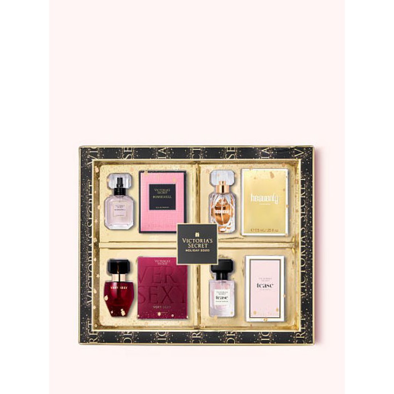 Set nước hoa victoria secret 4 chai dạng xịt gồm: * bombshell 7.5ml * very sexy 7.5 ml * tease 7.5ml * heavenly 7.5ml