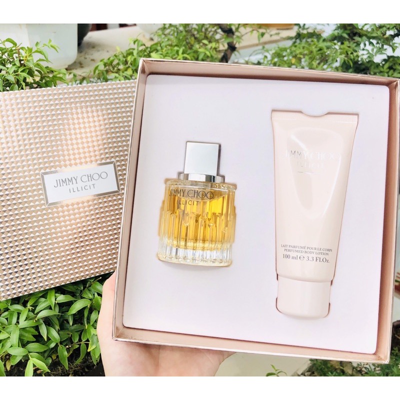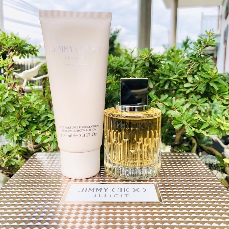 ✨ Set Nước Hoa Jimmy Choo ILLICIT. Gồm 2món: - Nước hoa nữ Jimmy Choo EDP 50ml - Sữa dưỡng thể Jimmy Choo 100ML 📌Giá saleee siêu rẻ👉🏻1450/Nguyên Set 💎Hàng có sẵn ship ngay - Nước hoa Jimmy Choo dành cho phái nữ với thành phần nước hoa quyến rũ bởi hương trái cây, lá cây, hổ phong lan, kẹo bơ, caramel ngọt ngào và hoắc hương Indonesia. ---------------------------------- Shop chuyên các mặt hàng phụ kiện kính, nước hoa, đồng hồ Mỹ. Nhập về mỗi tháng Zalo : 0828656077 ( add để xem hàng Auth) Chuyên Live các kiện hàng sỉ : túi xách Hàn, quần áo Nhật, giày Mỹ. 🥰🥰🥰 Live các ngày trong tuần từ 8h tối 😍