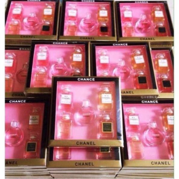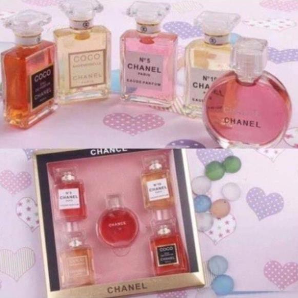 - Nước hoa Chanel hương thơm nồng nàn, say đắm, mang đến phái nữ sự tự tin, quyến rũ mỗi ngày. - Bộ sản phẩm gồm 5 chai: 🌸 N°5 Chanel (7.5ml) 🌼 N°19 Chanel (7.5ml) 🌹 Coco Mademoiselle (7.5ml) 🍄 Coco Eau De Parfum (7.5ml) 🌺 Channel Chance (8.5ml) - Mỗi chai mang đến bạn hương thơm khác nhau: quyến rũ, nữ tính, quý phái, gợi tình, tươi trẻ…làm đánh thức vẻ đẹp tìm ẩn của nữ giới. - Bộ sản phẩm được gói trong hộp xinh xắn, sang trọng. - Thích hợp làm quà tặng cho bạn bè, người thân. ---------------------- ☎️ Sđt (Zalo): 090.66.12457
