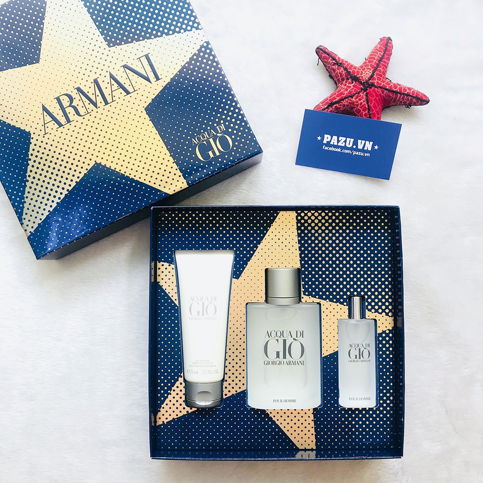 Set Giorgio Armani Acqua Di Gio For Men Gồm : ▪️Nước Hoa Acqua Di Gio 100ml ▪️Nước Hoa Acqua Di Gio 15ml ▪️Sữa Tắm Acqua Di Gio 75ml 🌊 Armani tạo ra mùi thơm của Aqua di Gio cho cả nam giới lẫn nữ giới. Hương thơm dành cho nam giới là một mùi hương của sự tự do, đầy gió và nước. Hỗn hợp mùi hương này được hình thành từ sự hòa hợp hoàn hảo giữa mùi hương ngòn ngọt mằn mặn của nước biển và ánh nắng ấm áp mơn trớn trên làn da của bạn 🌊 Acqua Di Gio Pour Homme được lấy cảm hứng từ những gì tinh túy nhất của biển khơi, ánh mặt trời, đất mẹ và những cơn gió lồng lộng của những hòn đảo miền biển Địa Trung Hải. 🌊Hương cam quýt đăng đắng với hương thơm của hương thảo quyện với vị mặn của biển và tinh chất hoa nhài trong suốt 🌊 Với hương thơm tinh khiết, ngào ngạt và nồng nàn mùi gỗ, mùi hương thoang thoảng của gió biển, quả chín, và cây cỏ, Acqua Di Gio Pour Homme là sự thể hiện rõ ràng nhất của nam tính ở mỗi người đàn ông. Mùi hương đặc trưng: 🌹 Hương đầu: Hương thơm của biển, Quýt, Chanh yên 🌹 Hương giữa: Dầu hoa cam, Hương thảo, Hoa sung. 🌹 Hương cuối: Hoắc hương, vani, Xạ hương. 🌊 Phong cách: Tinh khiết, hiện đại, nam tính. ================== Ship hàng toàn quốc. CUNG CẤP SỈ & LẺ NƯỚC HOA, MỸ PHẨM, THỰC PHẨM CHỨC NĂNG NHẬN ORDER HÀNG MỸ - ÚC - NHẬT - ANH Website: Pazu.vn Hotline: 0939.658.608 Add: 448/1 Trần Hưng Đạo, P.2, Q.5, Tp.HCM.