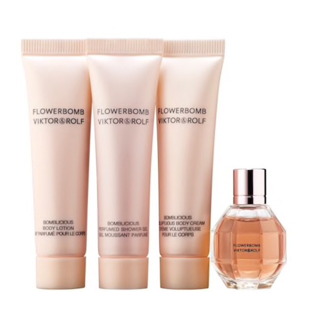 Gift set nước hoa mini nữ Flowerbomb - Viktor & Rolf - Gift set lần này có thiết kế hộp đựng bằng thiếc, cực kỳ sang chảnh. - Set Flowerbomb - Viktor & Rolf gồm có: - Nước hoa 7ml - Sữa tắm 15ml - Dưỡng thể 15ml - Kem dưỡng 15ml - Flowerbomb là chai nước hoa phương Đông được ví như một bó hoa đẹp mang hương thơm ngọt ngào, được thiết kế bởi Olivier Polge, Carlos Benaim và Domitille Berthier. - Nước hoa Flowerbomb sẽ mang lại cho người dùng một cảm giác được thoát ly và sống trong một thế giới bí ẩn của riêng họ, xa rời với thực tế. - Flowerbomb mang hương thơm nữ tính, gợi cảm và quyến rũ, thích hợp dùng cả ngày lẫn đêm vào mùa thu, đông. - Mùi hương bắt đầu bằng hương cam Bergamot hòa huyện với mùi hương tươi mát của lá trà. Lớp hương giữa mang hương hoa sang trọng, ngọt ngào và tinh tế của hoa lài Sambac, hoa hồng Centifolia, hoa lan Nam Phi và hoa lan Cattleya. Mùi hương Xạ hương và hoắc hương trong nước hoa là hương thơm đặc trưng của phương Đông, trong khi đó hương sữa và phấn lưu luyến nhẹ nhàng trên làn da của chúng ta.