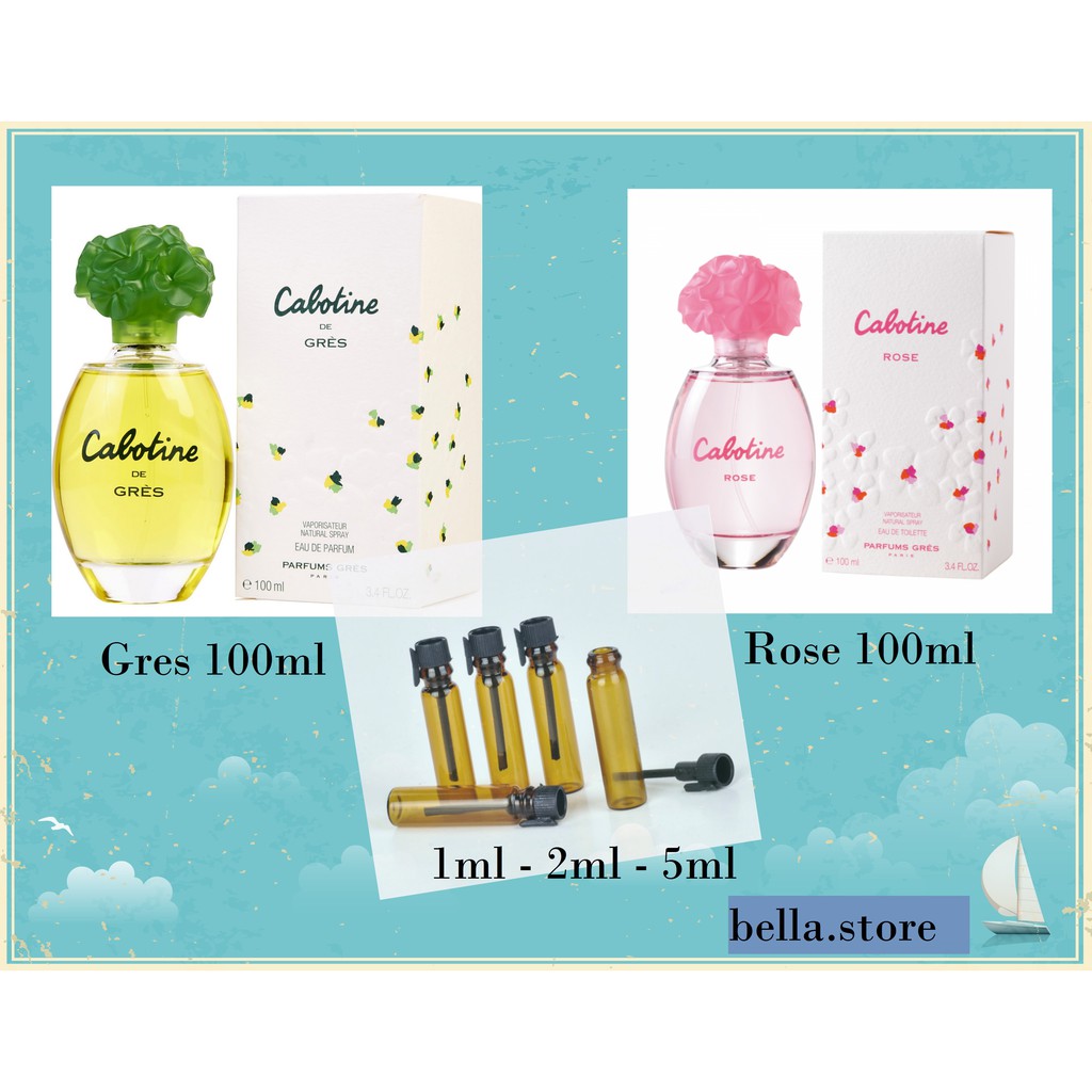 Đẹp, quyến rũ, lãng mạn, sang trọng đó chính là những gì làm nên thành công của Cabotine . Một hương thơm kỳ thú và sinh động tràn đầy sức sống là những gì bạn cảm nhận được ngay khi chạm đến hương thơm của chai nước nước hoa này. Chai màu hồng Rose có hương hoa nhẹ nhàng dễ chịu, dễ dùng, thích hợp với những cô gái dịu dàng, nữ tính. Chai màu xanh Gres có hương hoa tươi mát, tinh nghịch của cỏ cây, thích hợp với những cô gái năng động tươi tắn. Chai 100ml là chai xanh, hồng như hình. Ống 1ml dùng thử là ống vàng nhỏ, các bạn xem hình kỹ giúp mình nhé.