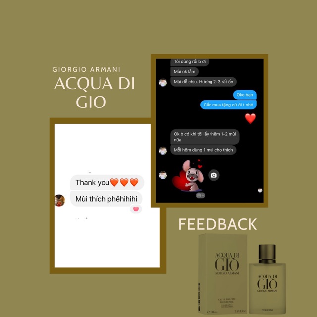 Sản phẩm Nước Hoa Mini 20Ml 𝐀𝐜𝐪𝐮𝐚 𝐃𝐢 𝐆𝐢𝐨 𝐏𝐨𝐮𝐫 𝐇𝐨𝐦𝐦𝐞 nhận được 9 lượt đánh giá tích cực từ những người mua khác. Bấm vào nút Xem Đánh Giá để chuyển sang phần đánh giá của người dùng đã mua hàng.